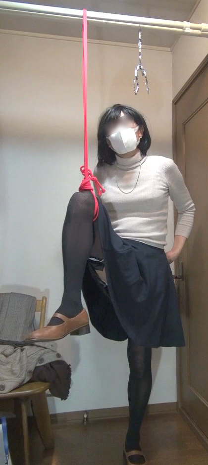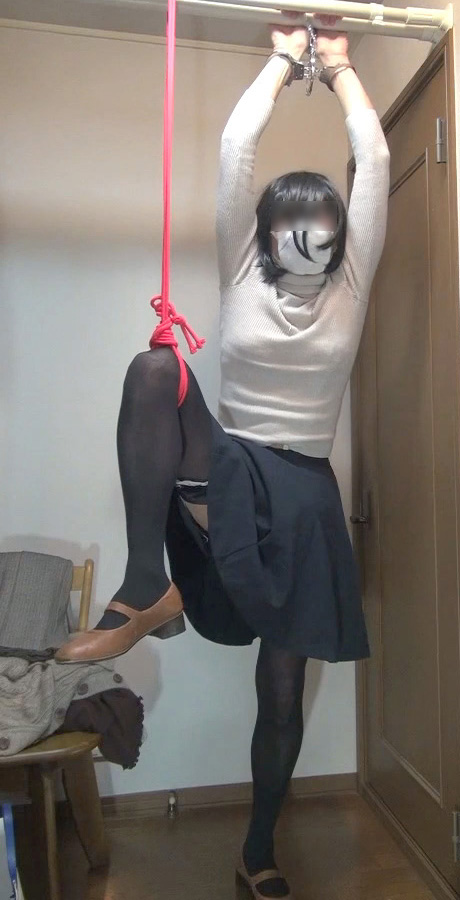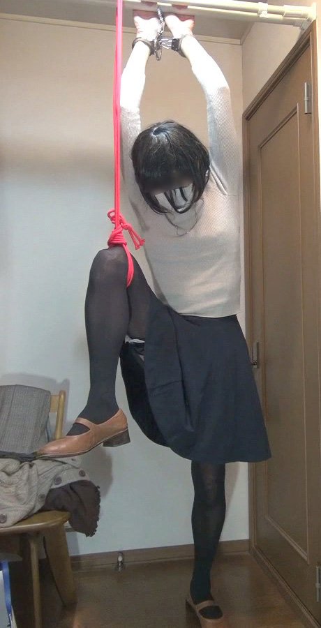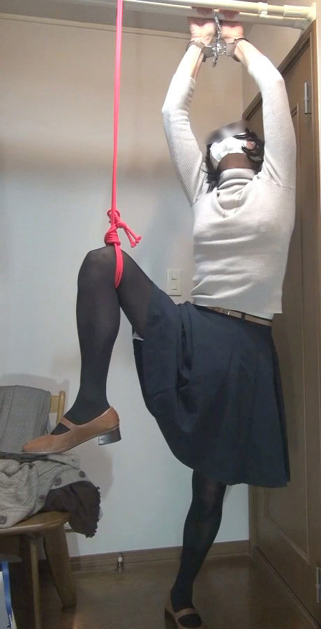 脚を吊り上げるロープの非情さ...純子がどんなにいやがっても脚を下ろさせてくれないの...