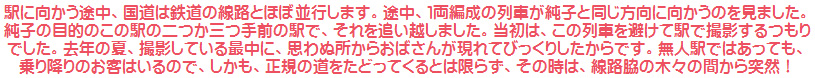列車がホームに入った時、なぜか純子はカメラをすぐに進行方向に据え直しました。遠ざかる列車を写したかった?それなら、ホームの向こう端に行かなくっちゃ...