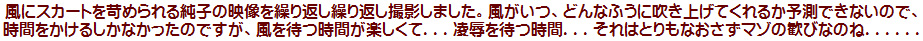 この日、何回目かの撮影...風にスカートを捲り上げられる様子を撮影したい...そう思って、乱流の起きやすいところを狙って撮影ポイントにしました。