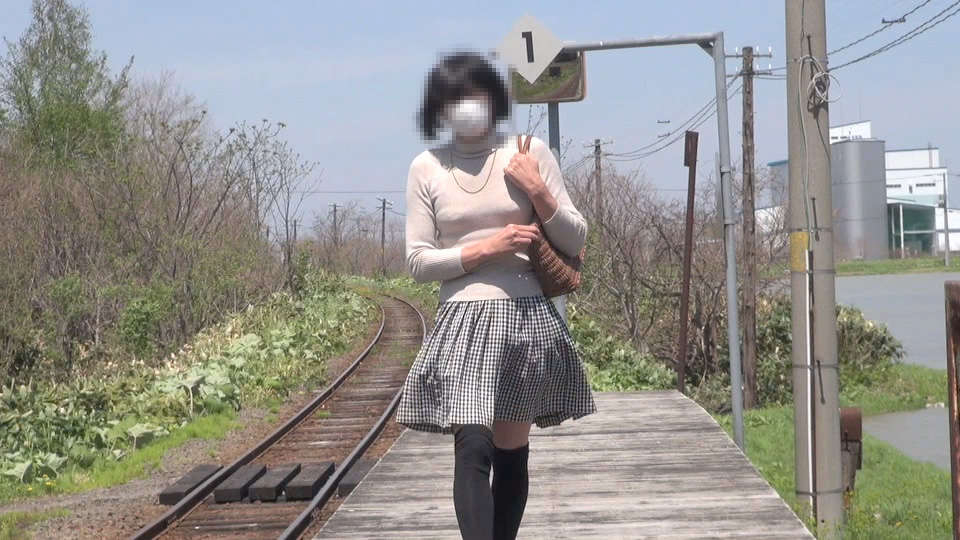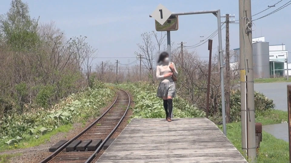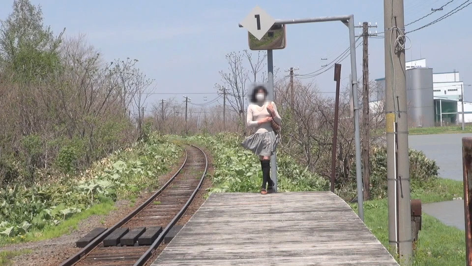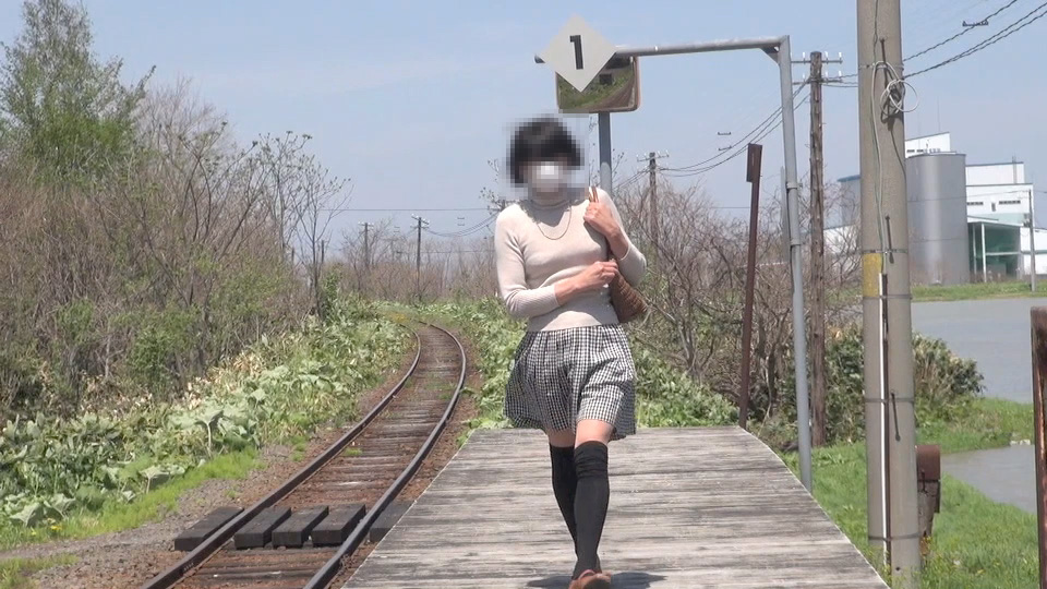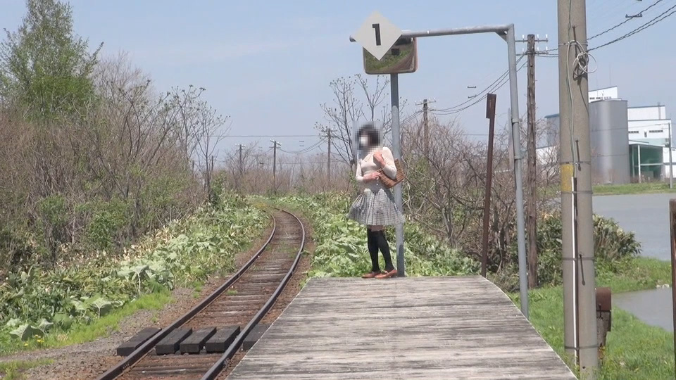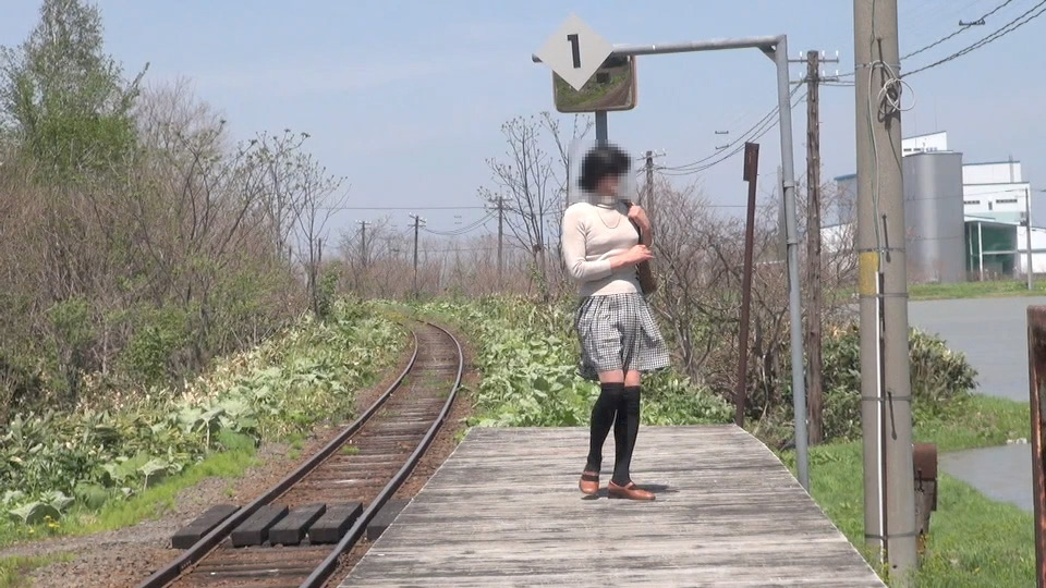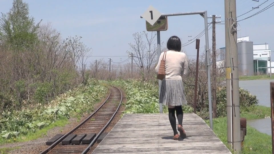 列車が去って行った方向です。カメラの位置からホーム端まで、ちょっと距離があります。純子がカメラに戻る前に、階段を上がって来たら...