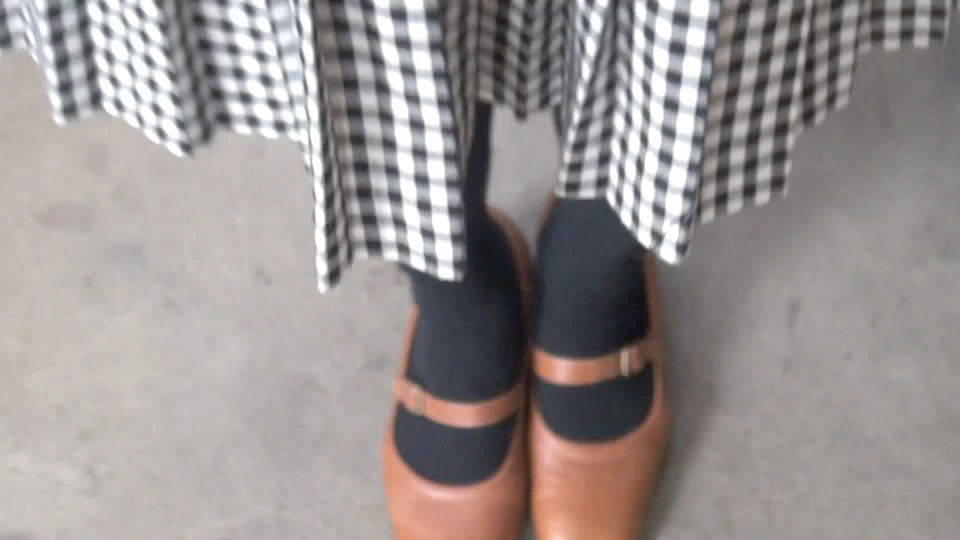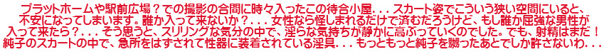 待合小屋の中に立つ純子のスカート...ギンガムチェックのプリーツミニスカート...こんなところでスカート姿で一人きりで...気持ちが高ぶります。