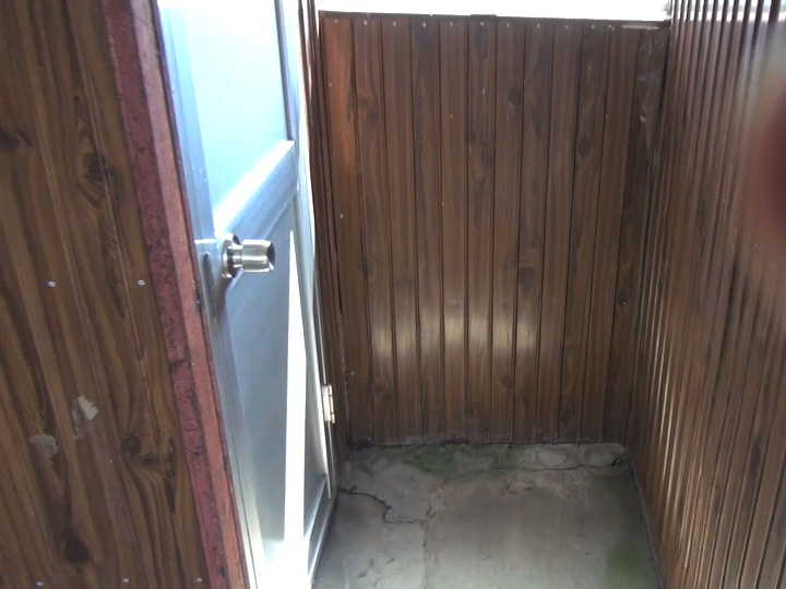 待合小屋の奥にひっそりと閉まっているトイレの扉...とても閉塞感のある狭いコーナーにぎりぎり開く程度の扉です。純子はスカート姿で扉を開けました。