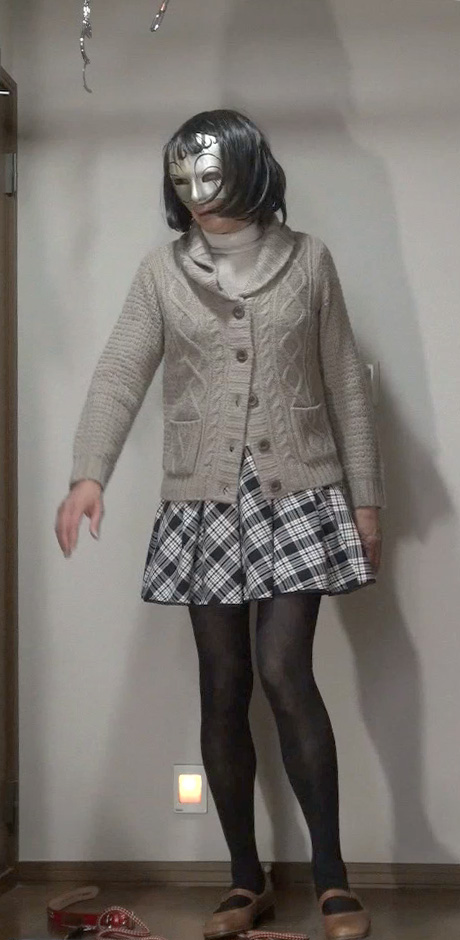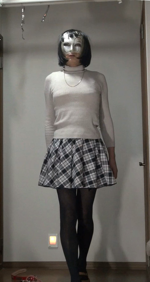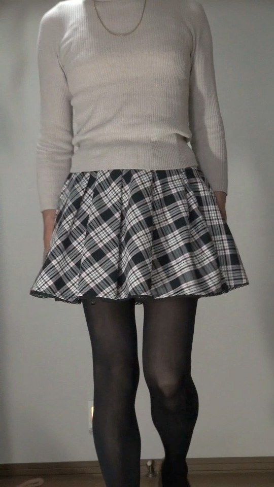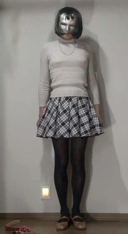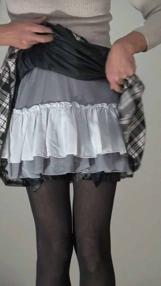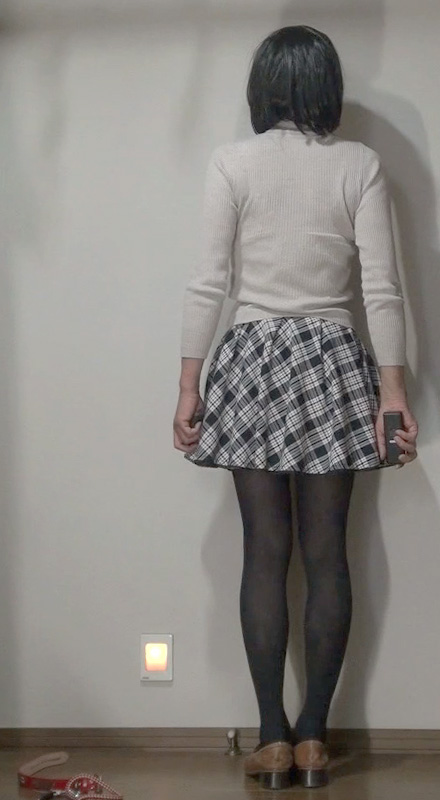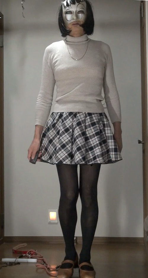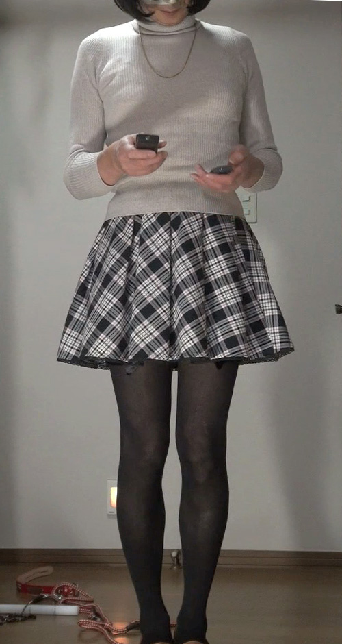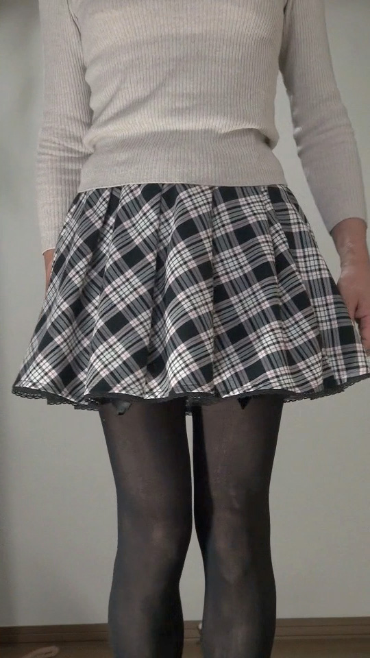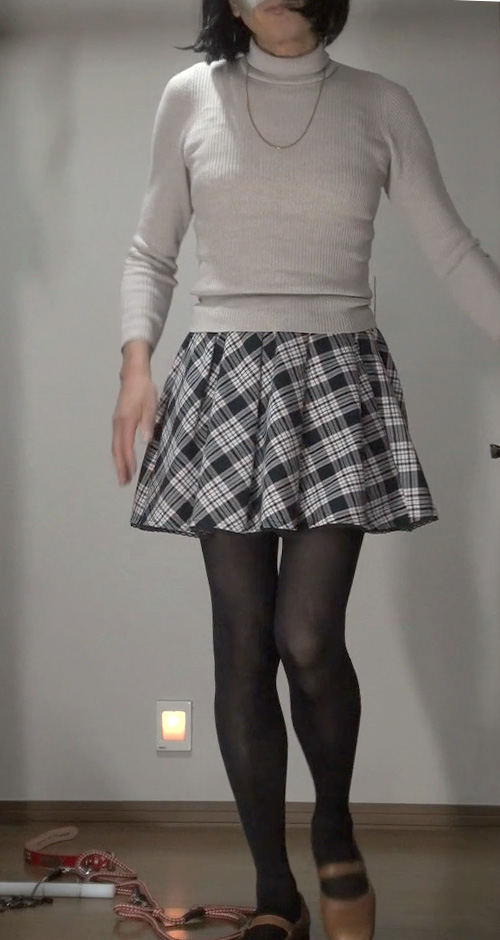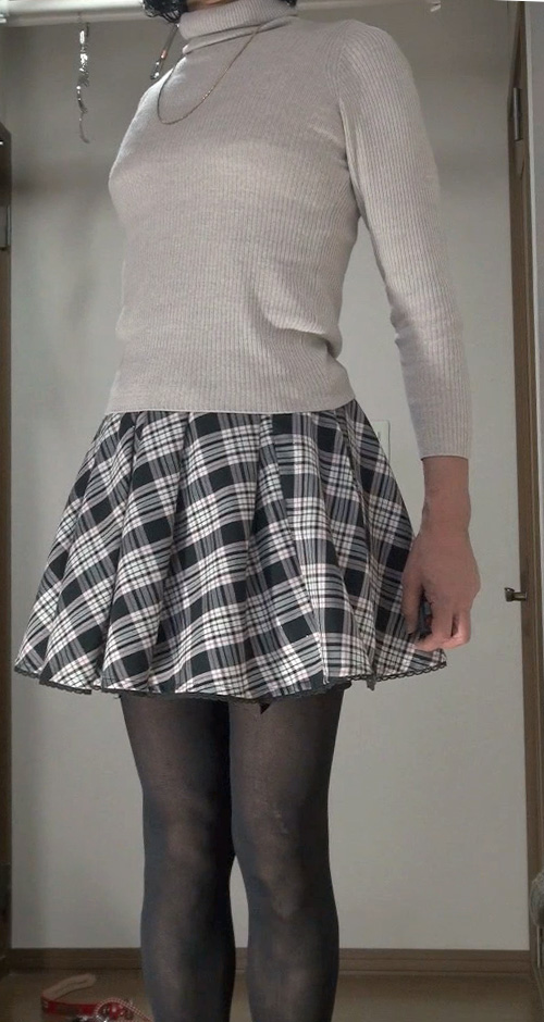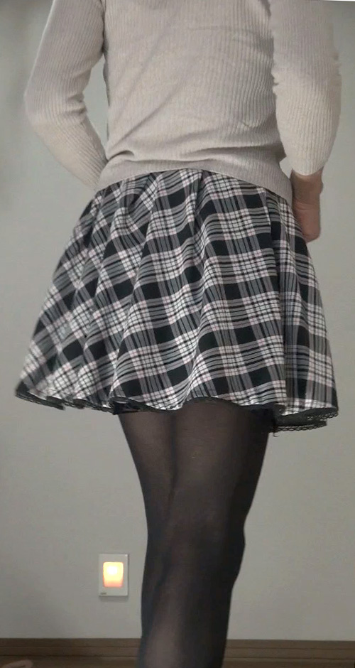 純子が着用するスカートの中では、下の水玉フレアー(最近はほとんど穿きませんが)と、このフレアーミニが一番短いスカートです。