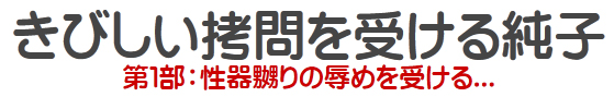 | 「中林純子!午後の拷問の時間だ。立て!」...純子は手錠をかけられて檻から出されました。 みんなの前を引き回されるという辱めも兼ねて、鞭で追われながら拷問室に連行される純子です。 拷問室ではいったん立たされた後、床に脚を伸ばして座るように命令されました。ああ...いよいよ拷問が始まるんだわ... ![]() 純子のまわりを囲んだみんなが、床に広がるスカートをいやらしい視線で見下ろしています。そしてスカートが捲られました... ![]() 拷問係の女性がスカートを直してくれました。でもすぐに、スパンキングパッドを太ももに当てられ、そしてスカートも... ![]() ああ...ひどいわ。こんな画像を晒しものにされるなんて...奴隷リングと懲罰バンドで締め上げられた純子の性器... ![]() 剥き出しの太ももにスパンキングパッドが炸裂します。バシッ...バシッ...純子のからだは苦痛と屈辱で興奮して行きます... ![]() 四つん這いの姿勢を命令され、スカートもペチコートも捲り上げられました。赤いロープの股縄が純子の股間を締め上げています。 ![]() 屈辱的な姿勢でお尻を嬲られ、軽くスパンクされた後で純子は許されました。元の姿勢を取るよう命令されて... ![]() またスカートもペチコートも捲り上げられ、今度は性器嬲りが始まりました。スパンキングパッドで持ち上げられたりビンタを張られたり... ![]() 責め具を嵌められた性器をいたぶられるのはとっても恥ずかしい...みんな笑いながら意地悪な目で、責めを受ける純子を観察していました。 ![]() そして...ああ、こんな格好...恥ずかしい格好をさせられて、お尻をスパンキングされました。苦痛よりも屈辱のほうが純子を苦しめます。 ![]() ああ、こんな写真...後になって股縄を纏める紐がほどけているのを知りました。撮影中は無我夢中だったから気がつかなかったの... ![]() また四つん這いの姿勢になり、でも、今度はそのまま立つことを許されました。次の拷問タイムまで、純子はいったん檻に戻されました。 ![]() 檻の中では、スカート姿で正座しなければなりません。崩せば懲罰房です。いつ次の拷問に呼び出されるか息を詰めながら痛みに耐える純子です。 |