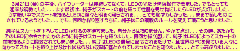 上の動画は小型ハイライト版ですが、完全版(約10MB)は大判で4分35秒の長さの全調教過程を含みます。