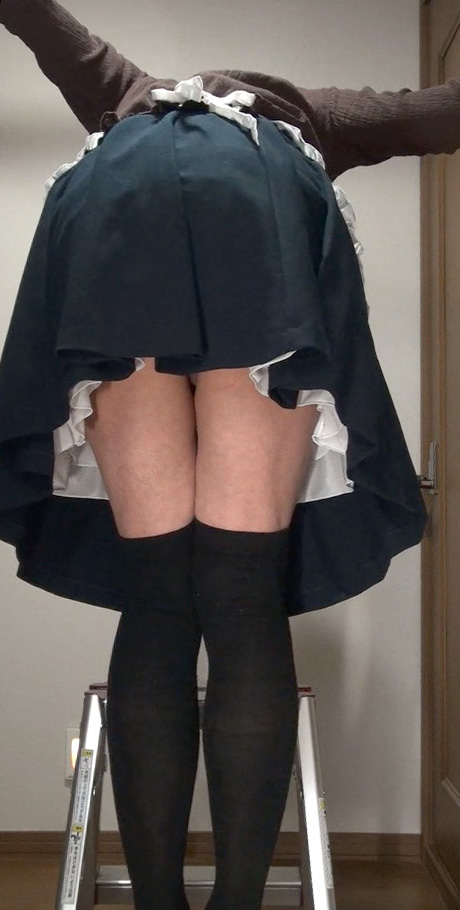 スカートの中では、この撮影に先立ってパンティーを脱がされています...