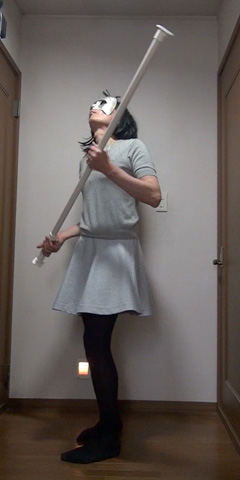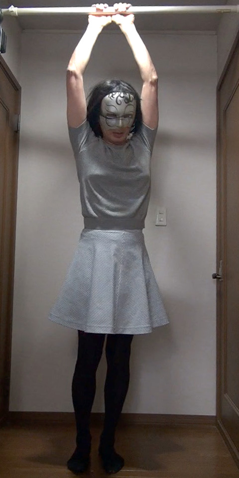 両手首に手錠をかけられて吊り上げられて...スカートの形...からだの形を検査される純子...