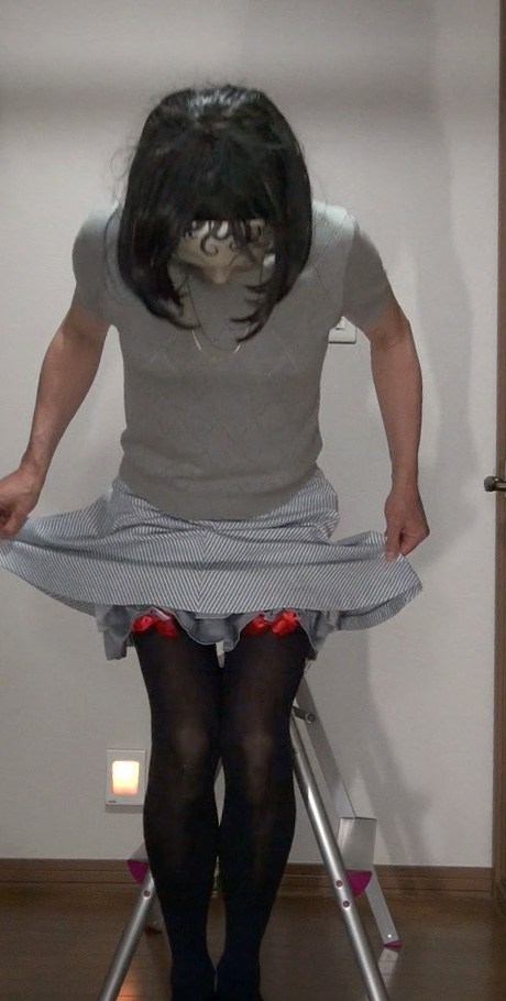 準備している間も、この短いスカート姿で、これからの被虐妄想に耽ります...