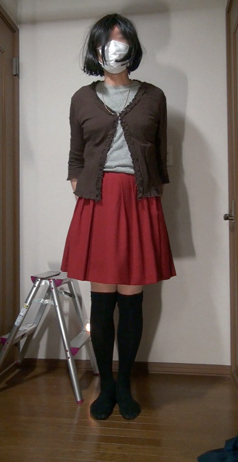 しました。でも怪しまれることもなく、撮影も順調でした。下は、無事に部屋に戻ってコートを脱いだ純子です。