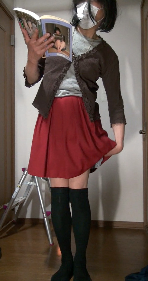 外出で高ぶったからだが、SM雑誌を読むことでさらに興奮して...スカートの中ですっかりは濡れてしまっています、ペチコート...