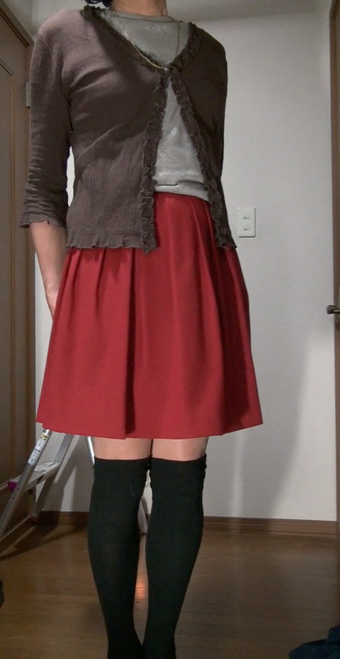 赤いスカートはそれだけで見るより、濃色系のスカートやコートと合わせて見た方がエロチック!