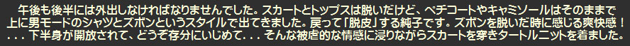 ズボンの中にはペチコート、シャツの下にはブラとキャミソール...誰にも分からない純子だけの暗い愉しみ...辱められる予感...