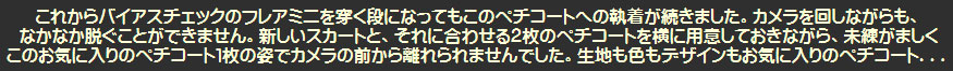 ああ...リッチなペチコート...圧倒的な生地の量ね...フレアーの重なり合いがスカートの中の空間をしっかりと埋めて...守って...
