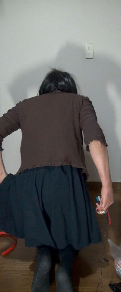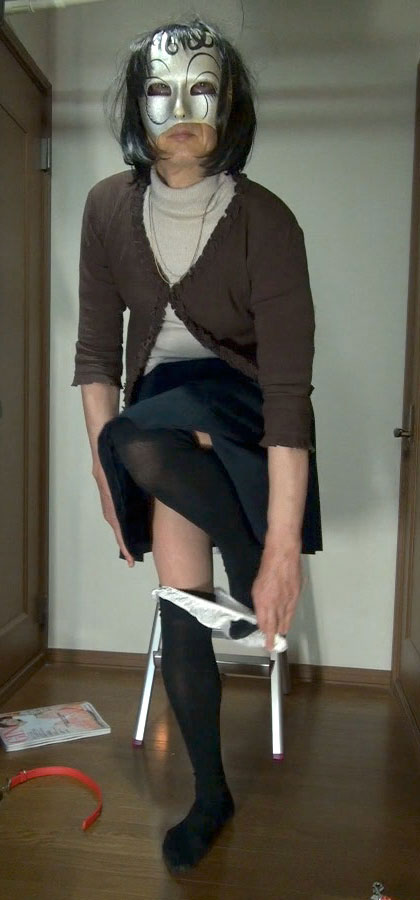 淫具に犯されたまま...股縄に固定されて...今、立たされました。ああ...つらいわ...スカートの中...