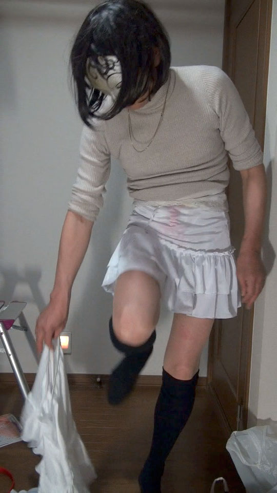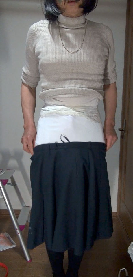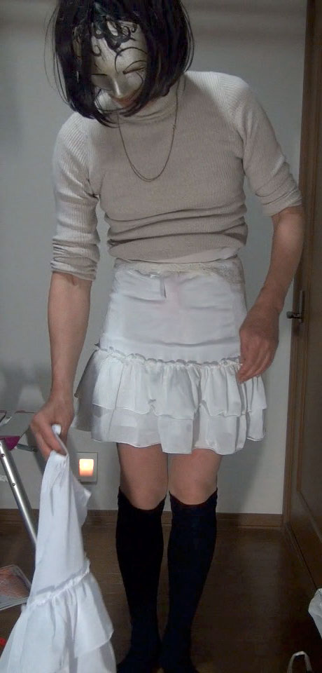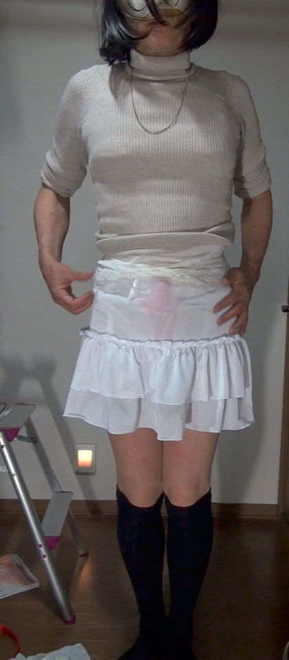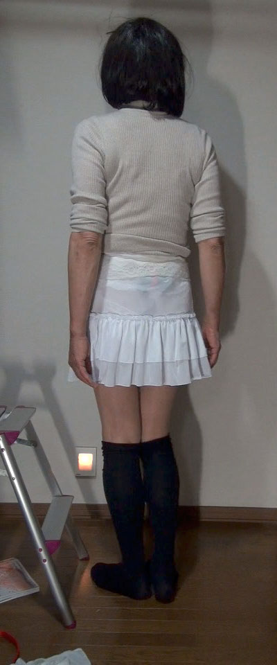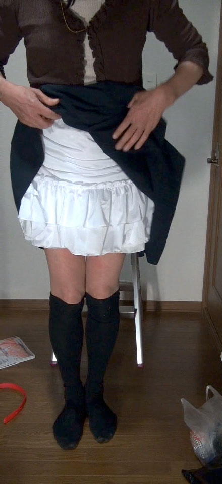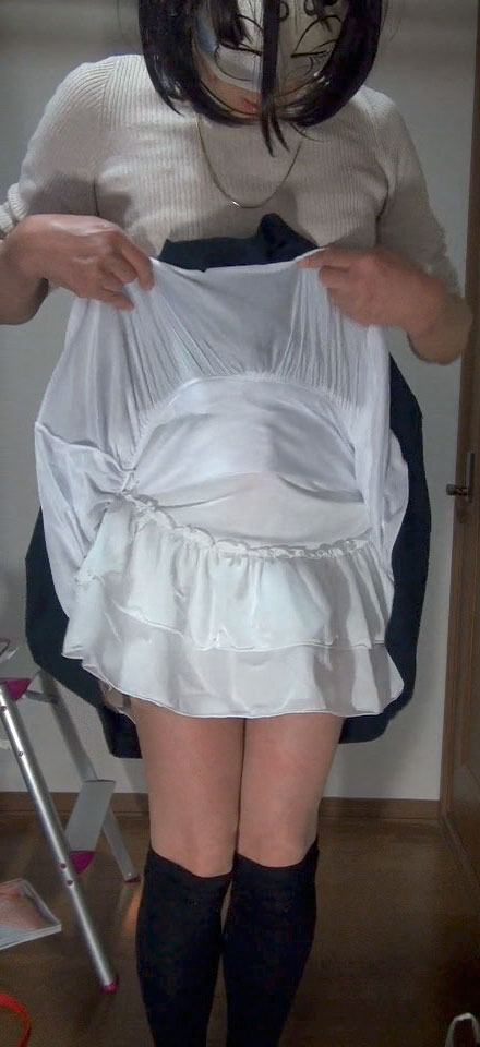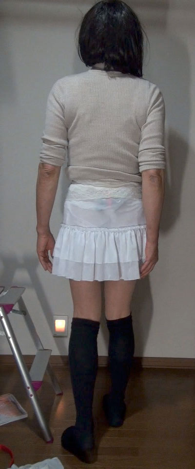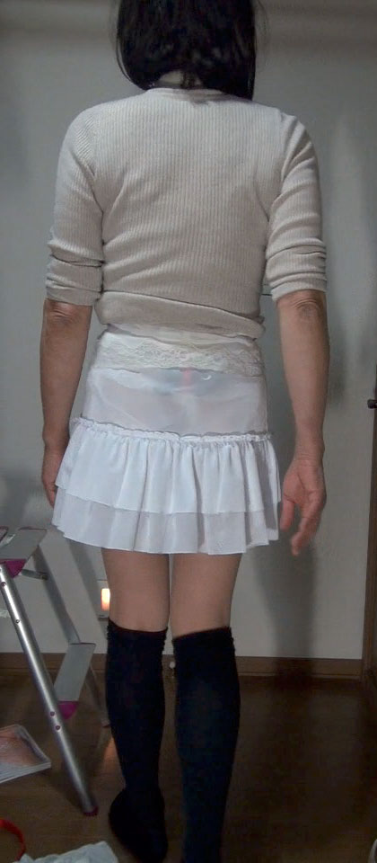 貧相なお尻!もっと豊満だったらペチコートももっと映えるのに...可愛らしいデザインね。女心をくすぐるのかしら?...いえ、女装子心?...