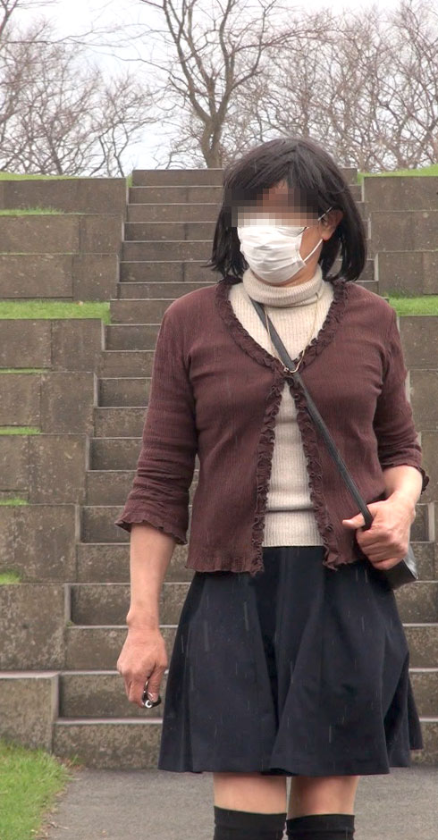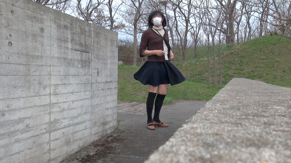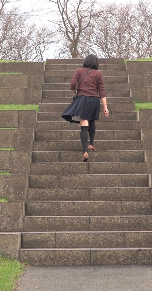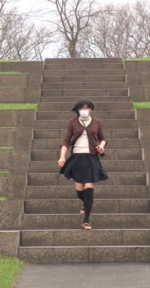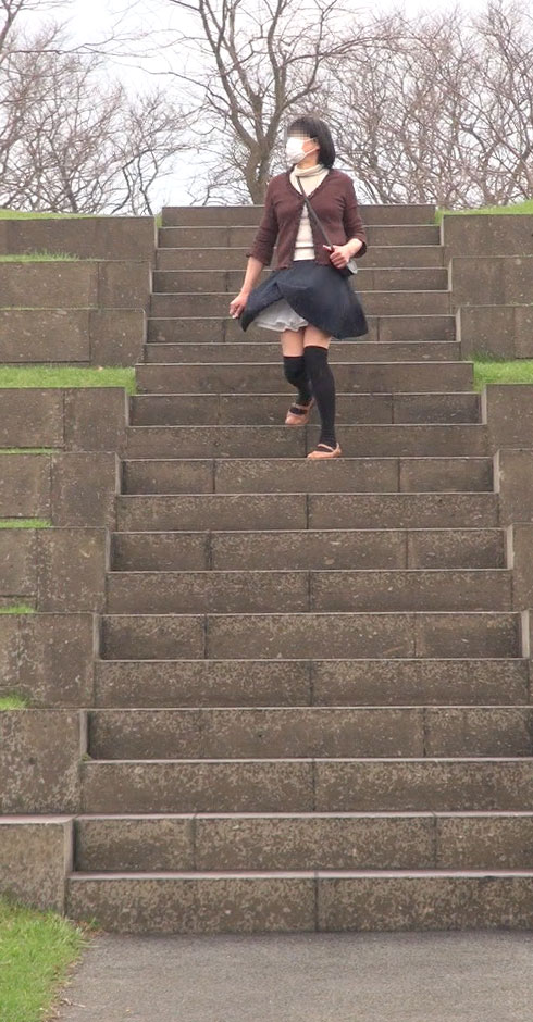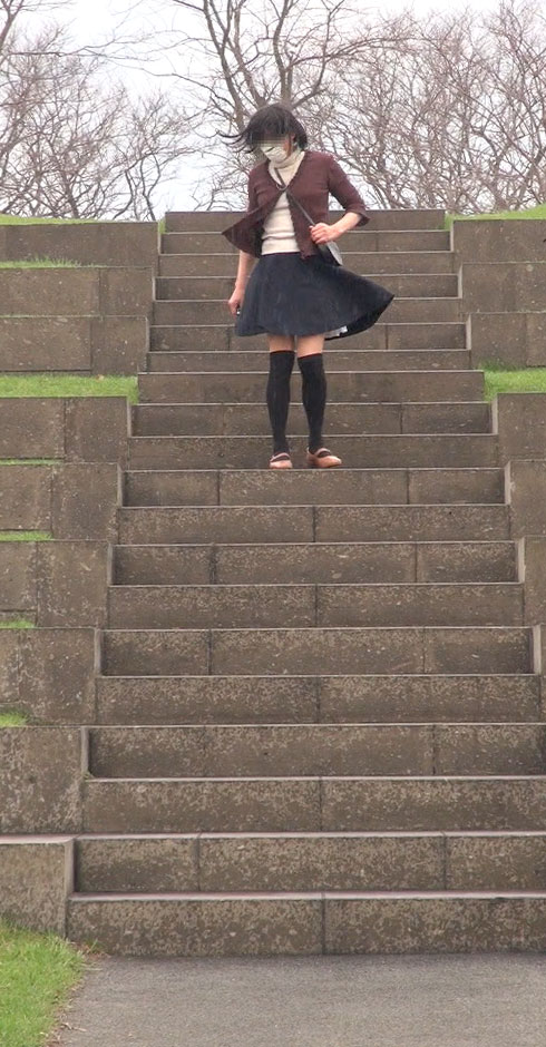 こんな階段の途中で立たされて晒しものにされる純子です...意地悪な風がいつスカートを襲ってくる分かりません。