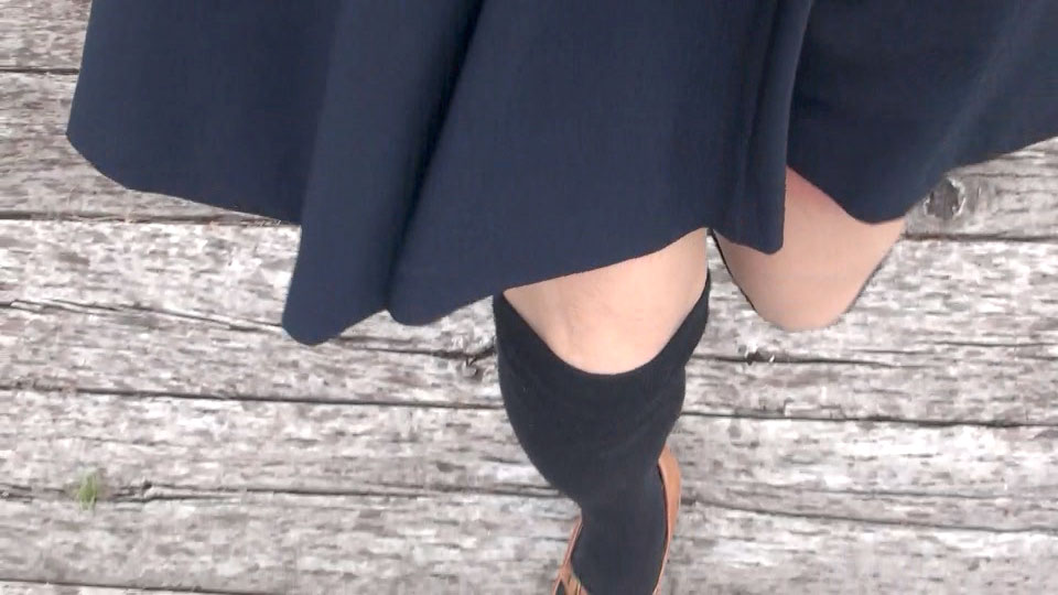 靴に目をやると、紺色のフレアースカートが風に揺れて...聴覚、視覚、皮膚感覚を総動員してスカートを楽しみます。