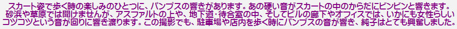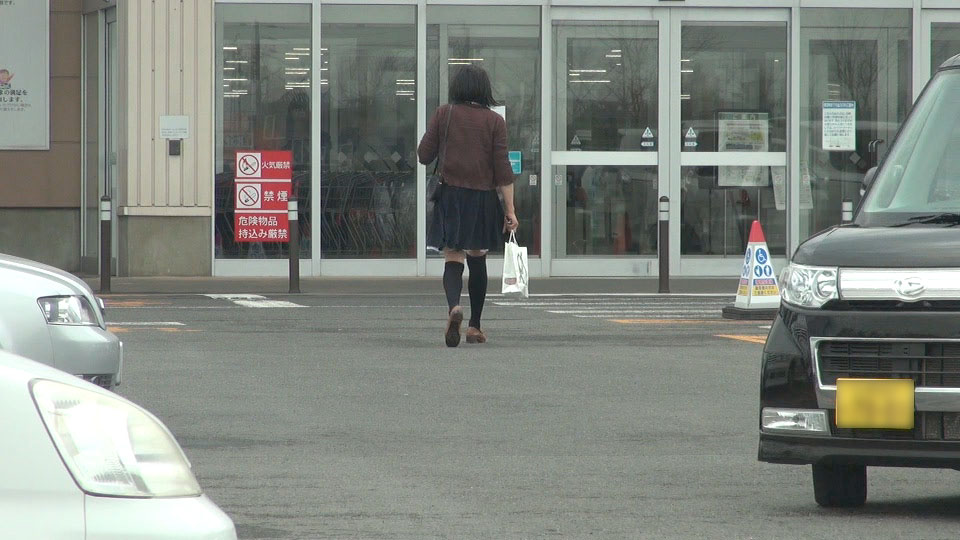 駐車場に響くパンプスの音...カメラが車内だったため動画にはその音が入っていないのが残念です。歩くたびにパンプスの響きがスカートの中に伝わります。
