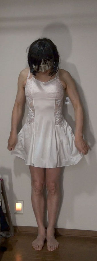 フレアーミニスリップ...朝一番の服装だから、手抜きの簡易バージョンです。朝食後、正式のスカート姿になる時はキャミソール+ペチコートに着替えるつもりです。