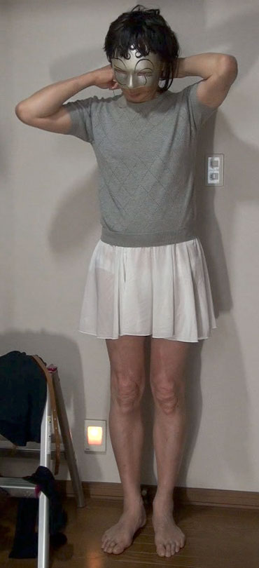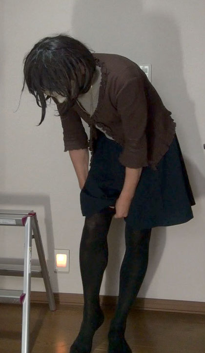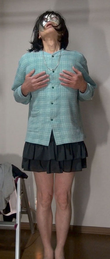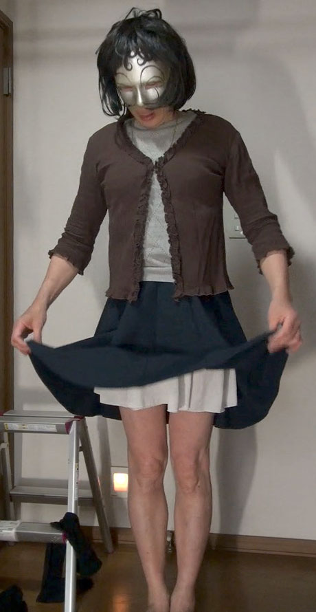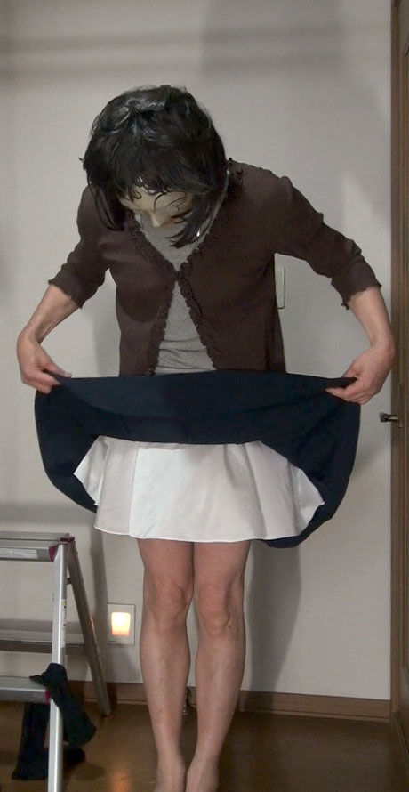 とうとうスカートを穿くところまできました。簡略女装なのでガーターベルトもストッキングも着けません。動くたびに素足を撫でるスリップやスカートのあの感触!ああ...