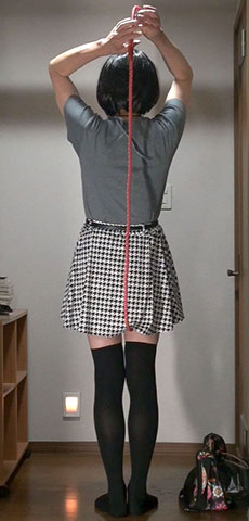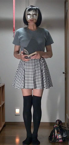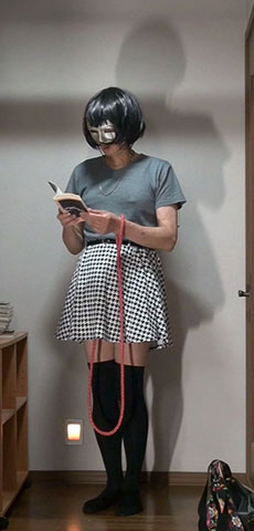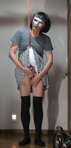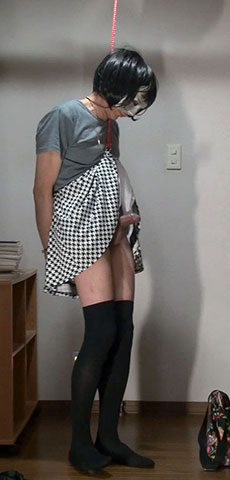 スカートの下では赤いロープの股縄がきっちりとかけられています...