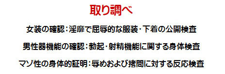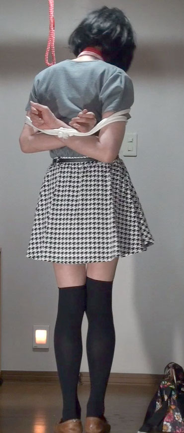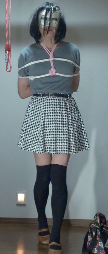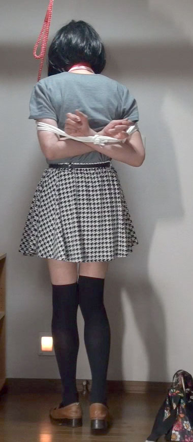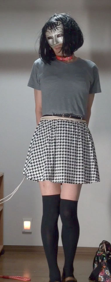 ![]() ![]() ![]() ![]() ![]() ![]() ![]() 捕えられた純子は縛り上げられるのかしら?それとも手錠・腰縄で連行されるのかしら?どちらもとっても屈辱的だわ。ああ... ![]() スカートの上から鞭でお尻を叩かれながら追われる純子です。まるで家畜かなにかのように...生脚の太ももにも鞭が当てられます。 ![]() 何をされてもいっさい抵抗できない純子...もし純子が捕縛吏だったら、このスカートの前を上からそっと触って純子をなぶります... ![]() そして純子の反応を確かめながらスカートの中に鞭を入れて、純子のからだをいじめます...辱めます...純子の嫌がることをします... ![]() 胸を搾り出されて縛られる純子...赤い首輪を嵌められた瞬間、純子は奴隷に落とされたことを実感しました。もう戻れない... ![]() スカート姿で縛られるって...完膚なきまでの屈服感...どす黒い絶望と無残な凌辱の予感...スカートの中のからだが高ぶって... ![]() こんな緊縛ごっこでも、拘束感は強いです。手が使えないことの無力感...緊縛の感触でじりじりと被虐の情感に追い込まれて行きます... ![]() ただ手錠をかけられるだけでなく、腰縄を付けられているということで、とても屈辱感が強く感じられます。ああ...曳かれて行くんだわ... ![]() 緊縛とちがって、たとえばスカートの前を意地悪されたら両手で払いのけることができます。ただしその後、何をされるか分かりませんが... ![]() スカートの上からお尻を撫でられたり、スカートを捲り上げられたりしても抵抗はできません。なされるがまま...恥辱に耐えるしかないわ。 ![]() 後ろ手に手錠をかけられてしまえば、スカートの前は無防備です。つまり...ええ...からだの敏感なところが攻撃に晒されることになります。 ![]() 前手錠の時と同様で、腰縄を付けられた姿ってとっても恥ずかしい...いかにも、純子は囚われの身です、って宣言して歩いているみたい... ![]() ああ...拷問室には入りたくないわ。許して下さい。拷問は堪忍して...純子は無理やり引きずられて拷問部屋に消えるのでした... ![]() |