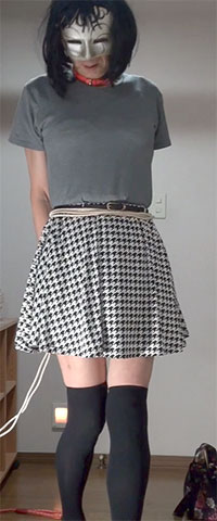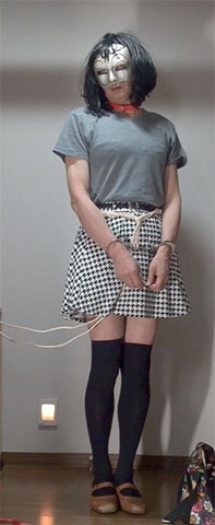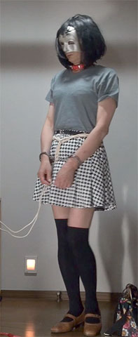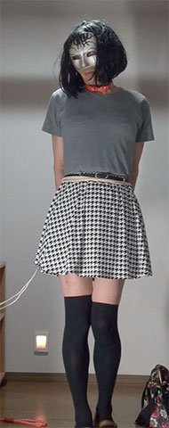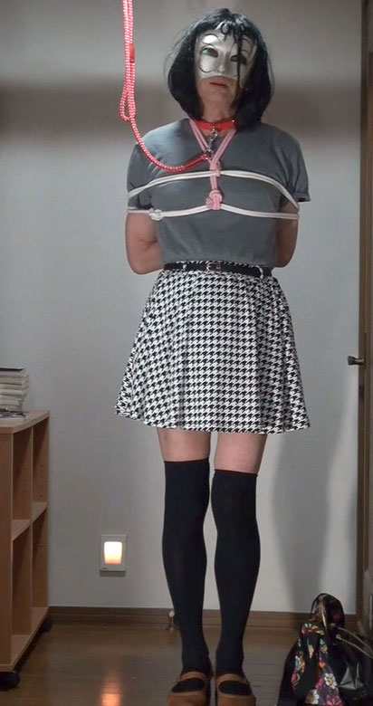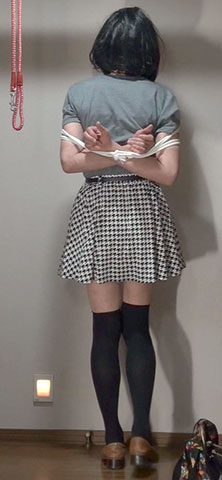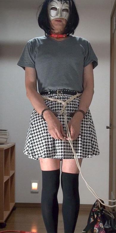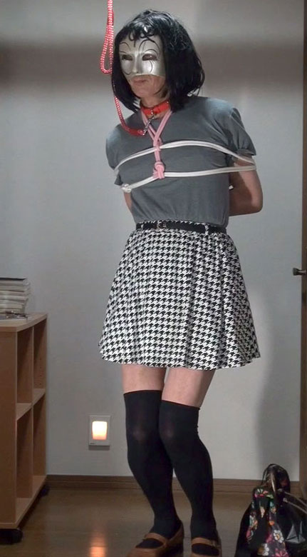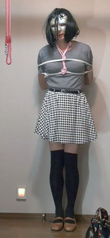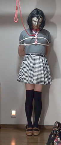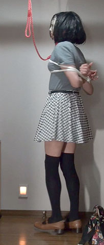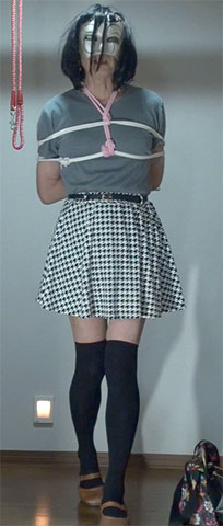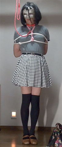 きびしく縛り上げられたスカート姿の純子が立たされています。首輪で繋がれた恥ずかしい格好で晒しものにされているの...