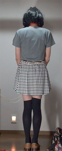 みんなの前に立たされた純子...恥ずかしいスカート姿...男のくせにスカートを穿いている姿...を、笑われながら意地悪な訊問に耐える純子...