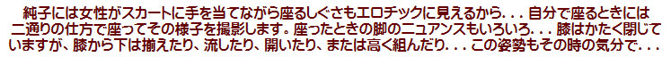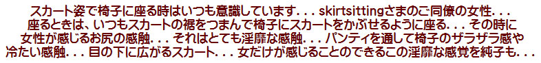 なく太ももも...スカートに手を当てて自分のお尻でスカートやペチコートを敷いて座ると大丈夫。どっちがマゾの座り方?