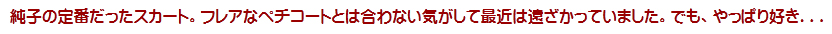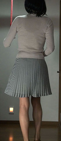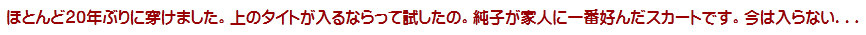 ギンガムチェックのプリーツミニスカート。以前の純子の定番でした。今、久しぶりに穿いてみて、やっぱり好きだわ、って思います...