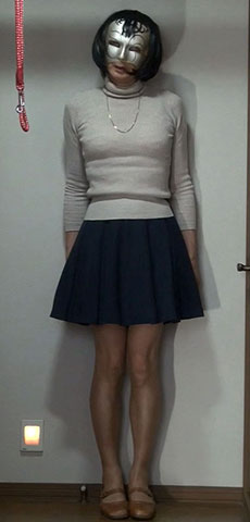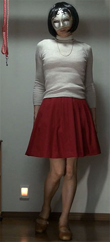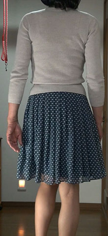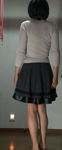 水玉のミディ丈プリーツスカート。撮影のために穿きましたが、見ている分にはすてきです。裏地がタイトなので穿き心地は今一つ...