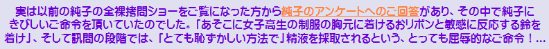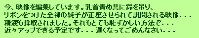 乳首をずっと苛められていた純子です。この責め...この調教...とってもきつい...きついわ...つらさで脂汗が額に滲み出てくる中で、精液を採取される純子です...