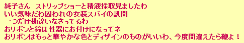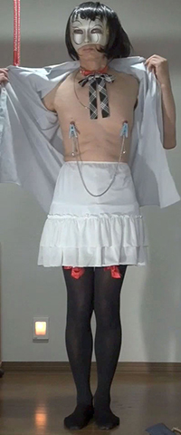 こんな短いスカートの中ですっかり高ぶってしまった純子...赤い股縄で締め上げられた股間から恥ずかしく興奮した性器を剥き出しにされて...変態女装マゾ!...