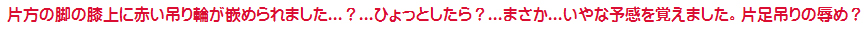 この夜のハイライトは片脚吊り...短いスカート姿で、片足を高々と吊り上げられるから、恥ずかしいからだが見えてしまう...とっても屈辱的な姿勢での調教でした...
