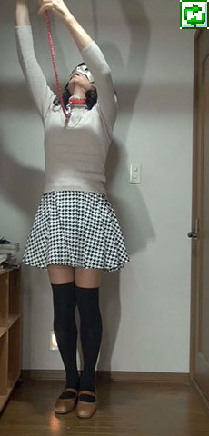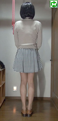 撮影を始めてから早い段階で、まだパンティを許されている純子です。普通に立っていれば見えないけど、こんな恰好を強要されるとパンティーが...