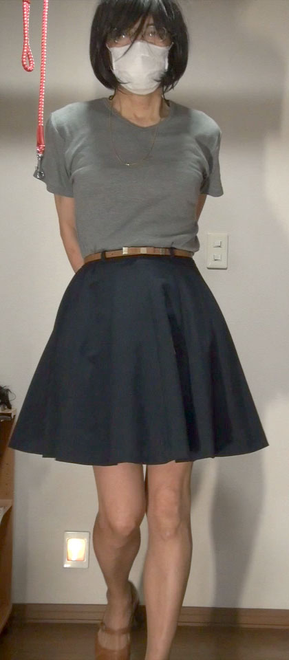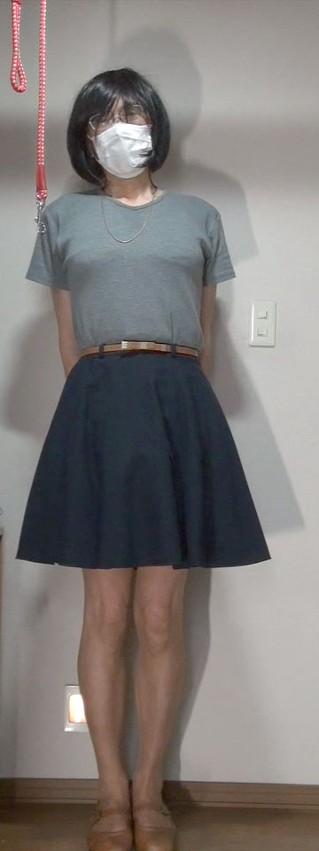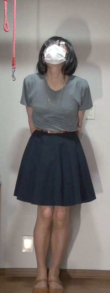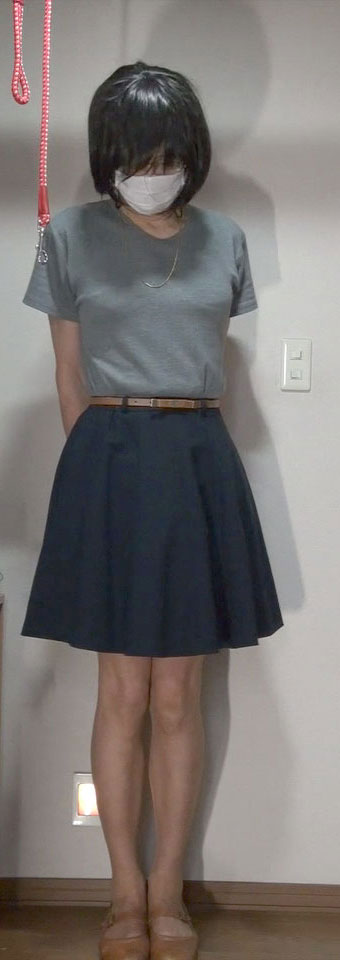 外出した時のスカート姿と持ち物のままカメラの前に立たされる純子...今夜はこれから訊問でさんざん辱められるんだわ...どす黒い期待に胸が高まって...