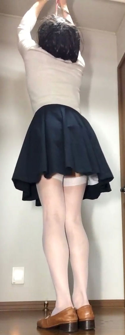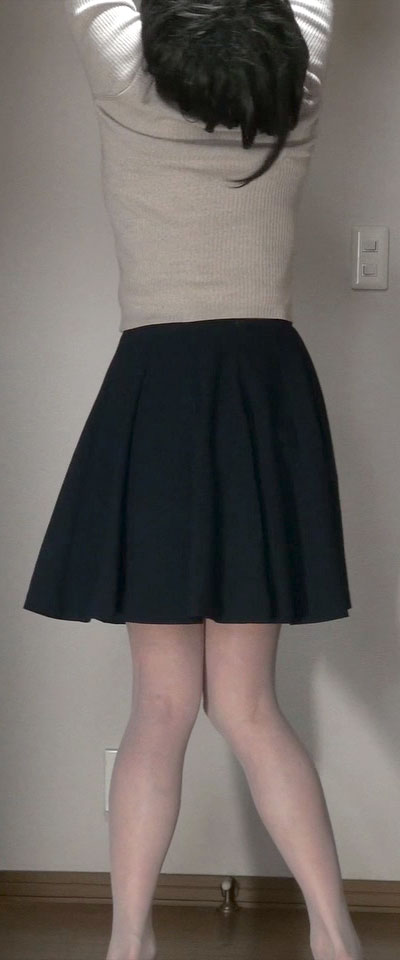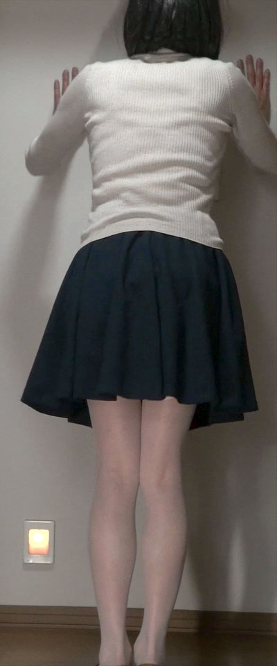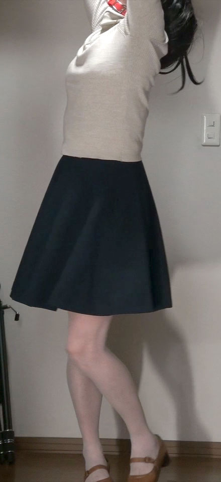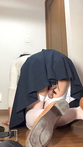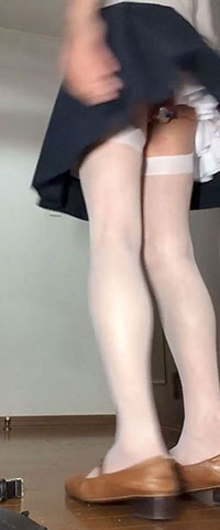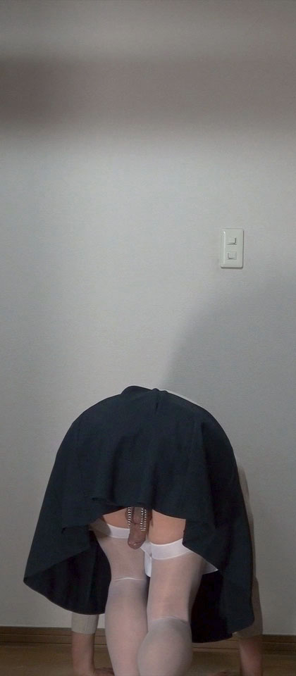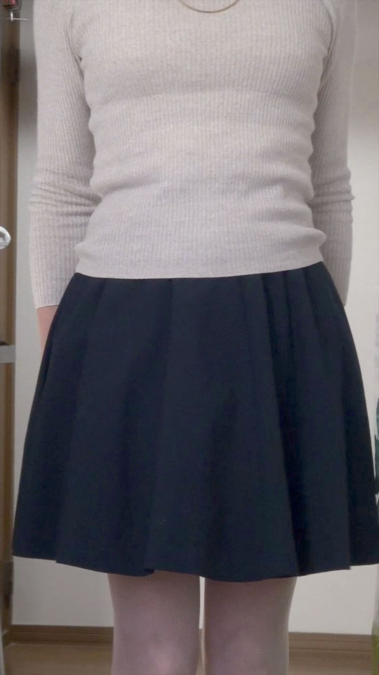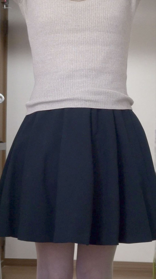 (精液がスカートの裾から滴り落ちる拡大映像です。スローモーションつき...)
