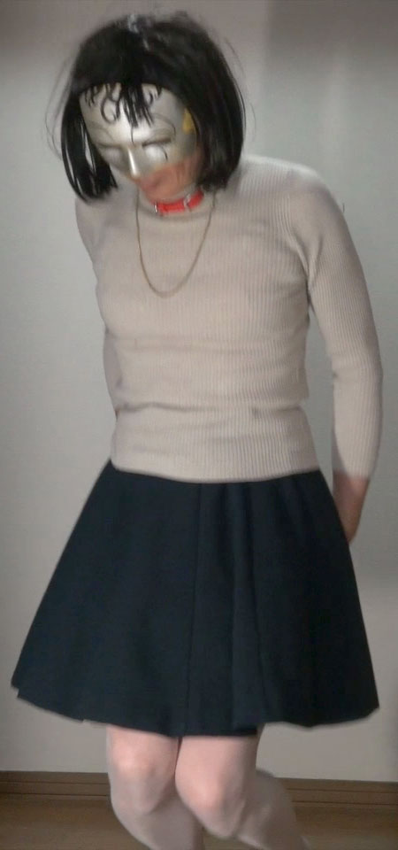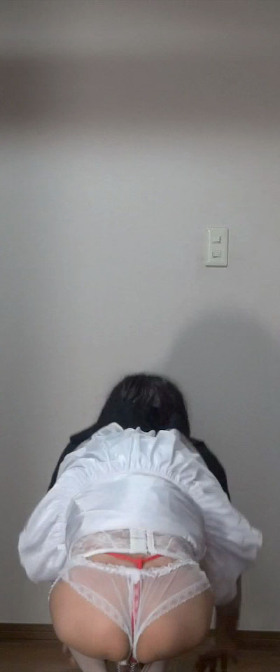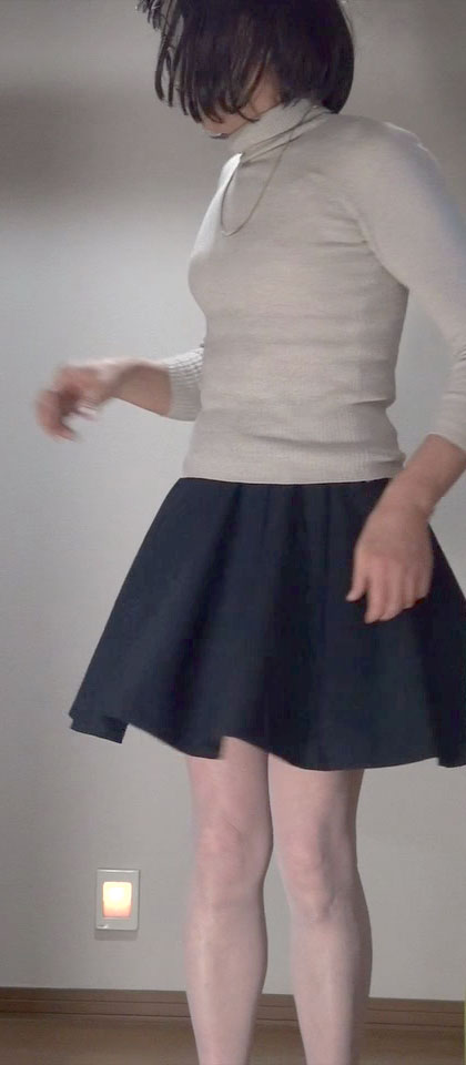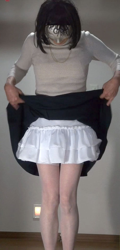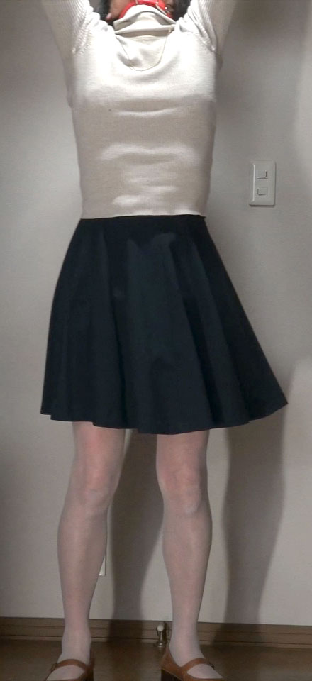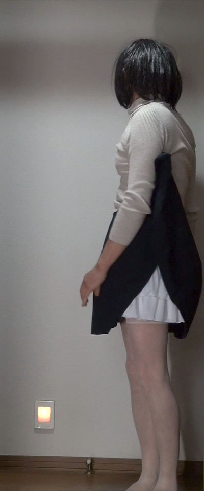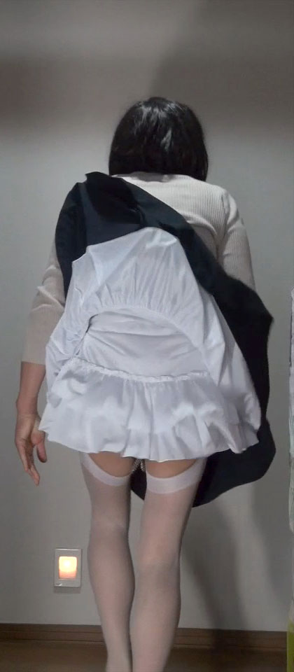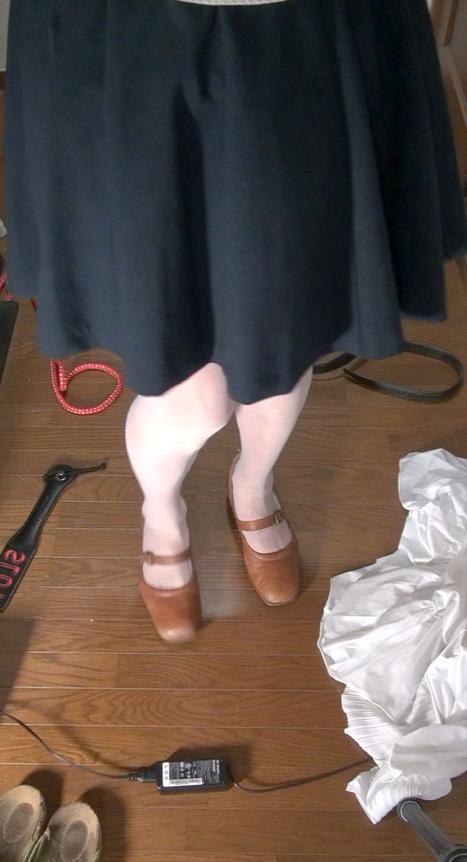 (精液がスカートの裾から滴り落ちる拡大映像です。スローモーションつき...)