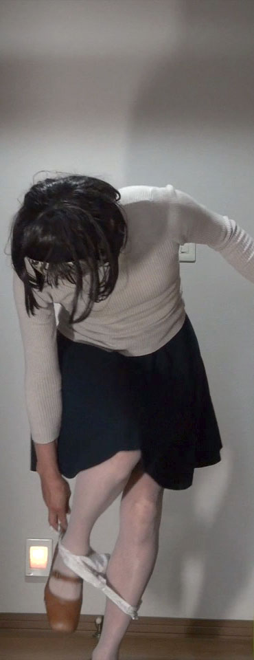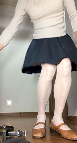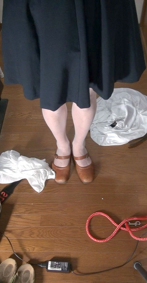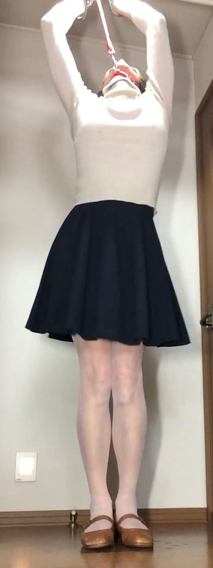 (射精中の純子の全体像を下から写しています。乱れる髪からパンプスまで...)