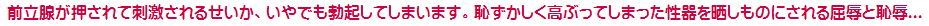 夜の外出で射精の欲求を一時的に紛らせていた純子ですが、部屋に戻ってからは、外出前以上の射精欲求の衝動に