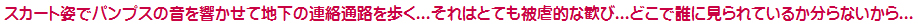苦しめられました。スカート姿にパンプスという格好で駅構内を歩き、たくさんの男女に見られと、という体験が純子を