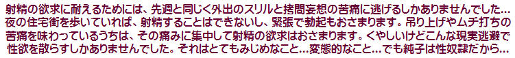 不安とスリルを感じながら夜の住宅街を歩いていたことは確かです。だって、帰ったらパンティの中で性器が濡れていたから...