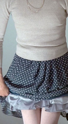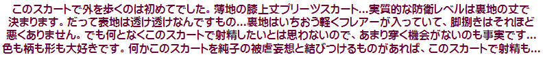外出したことは確かなようです。このスカートは表地は薄地のヒラヒラですが、裏地がしっかりしていて、しかもフレアーが
