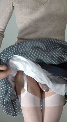 ここで純子の興奮をさますために、ちょっと外出してきました。きっとこのスカート姿で外に出るのは初めてです。
