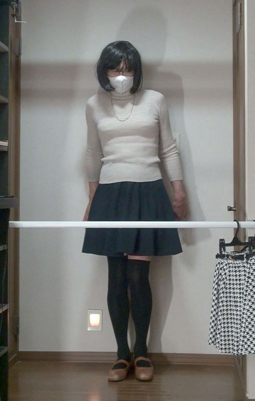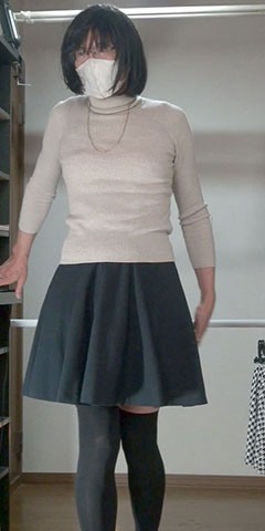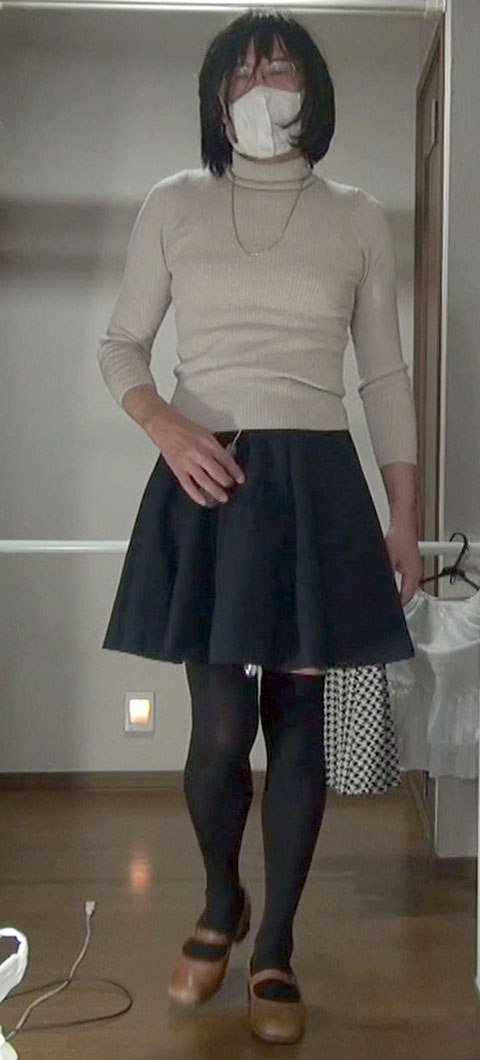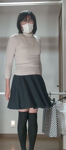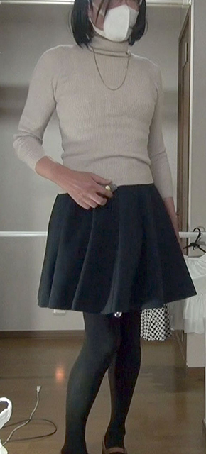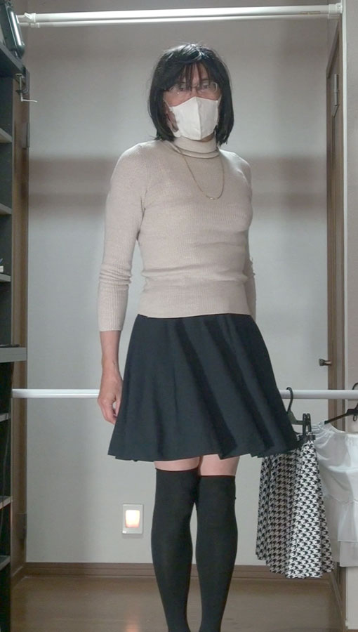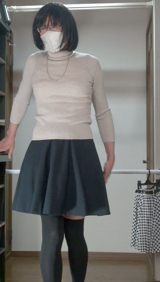 純子が穿きたいと思っている千鳥柄フレアーミニスカート...今夜はだめよ。スカート姿で別のスカートを持つ淫靡な悦び!ああ...スカート生活!スカートって大好き!