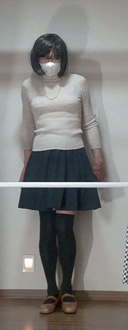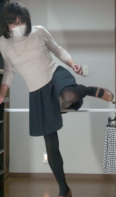 バーを跨いで立たされている純子です。スカートの中で純子が感じている冷たい感触をどうぞご想像になって...強制されて感じている屈辱の感触...