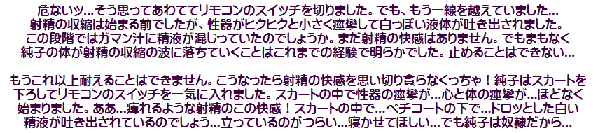 一箇月以上射精の誘惑に耐えた純子がとうとう崩壊して行きます...