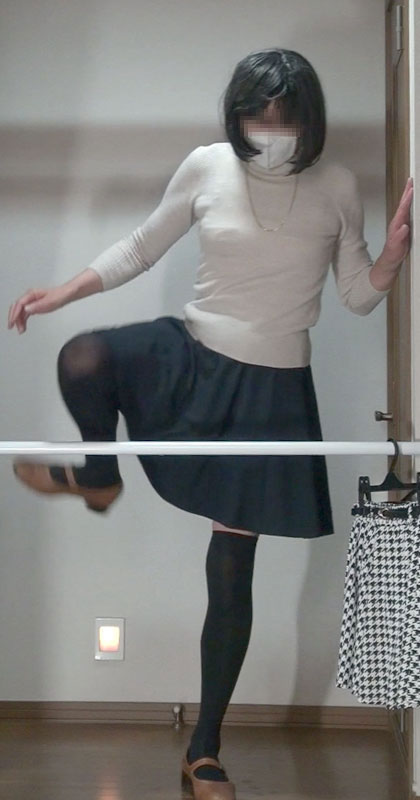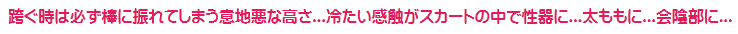 バーを跨いで立たされている純子です。スカートの中で純子が感じている冷たい感触をどうぞご想像になって...強制されて感じている屈辱の感触...