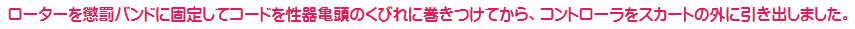 上の写真...性器根元を締め上げるゴム製懲罰バンドが見えています。高ぶってくると拘束感がたまらないの...ああ、いじめられているんだわって...