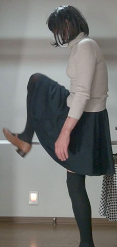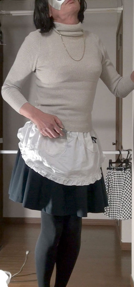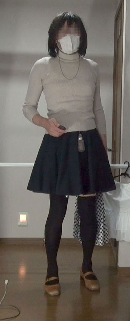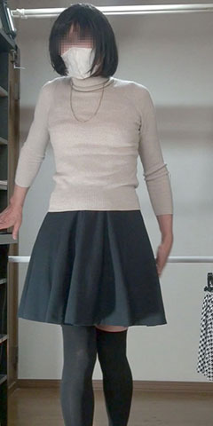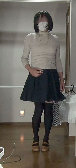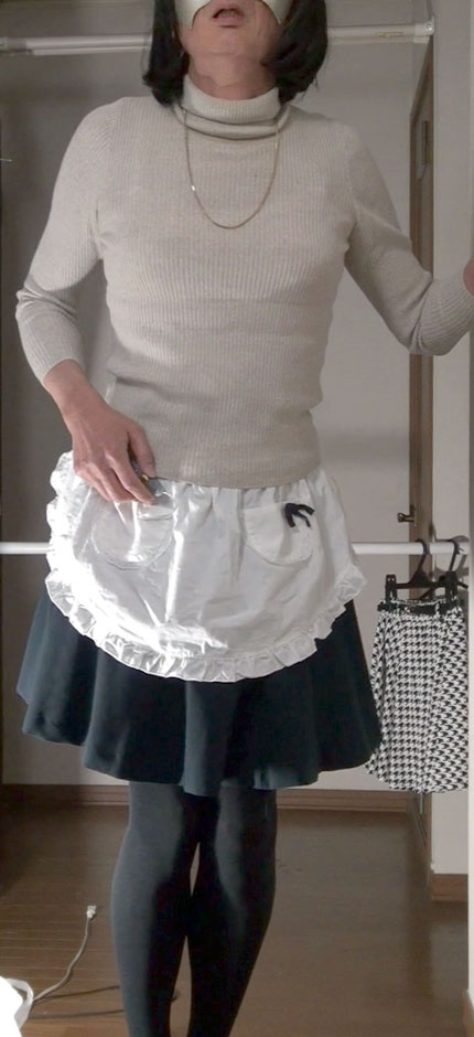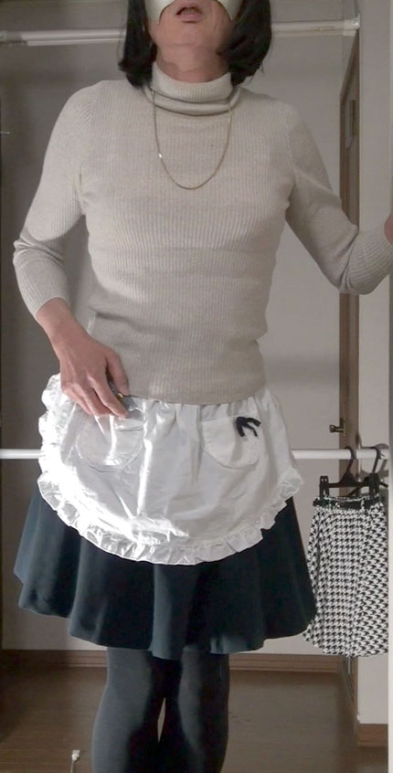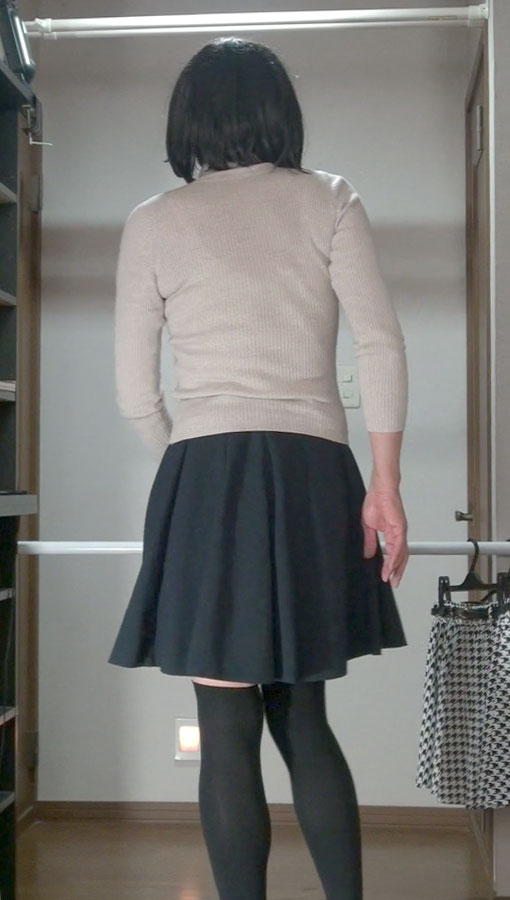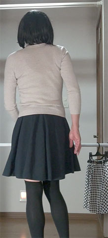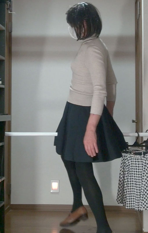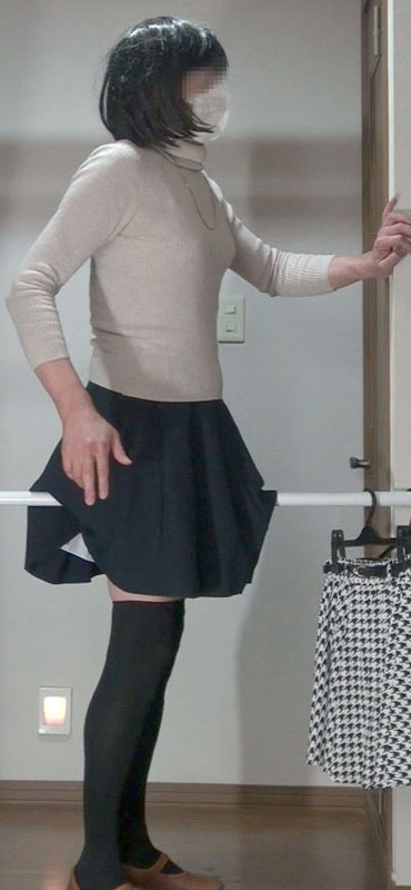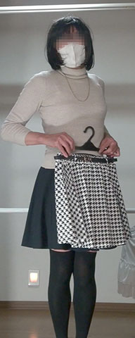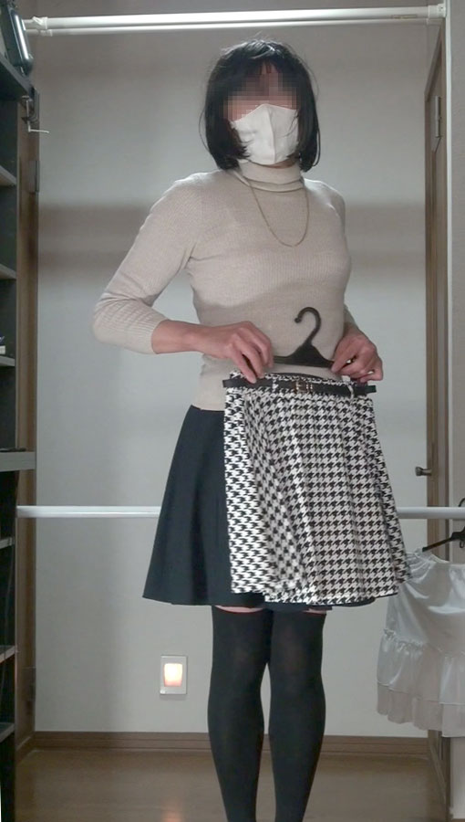 純子が穿きたいと思っている千鳥柄フレアーミニスカート...今夜はだめよ。スカート姿で別のスカートを持つ淫靡な気持ち!ああ...スカート生活!スカート大好き!